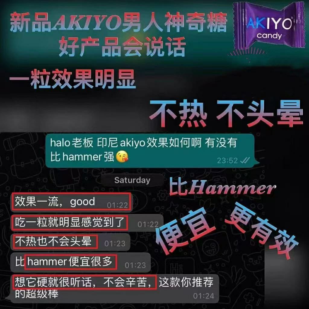 紫糖Akiyo汗馬糖,也被稱為:男性雄風糖,是一種從印尼進口的精力補充糖果。在台灣,這款産品有多個別名,比如悍馬糖、悍馬精力糖,以及簡寫形式的Akiyo紫糖和汗馬糖。悍馬糖是一種健康糖果,它的主要功效在於提供能量和改善體力錶現。它的特點是在生産過程中不添加任何對人體有害的成分,旨在確保消費者在享受甜蜜口感的同時,不會承受不必要的健康風險。