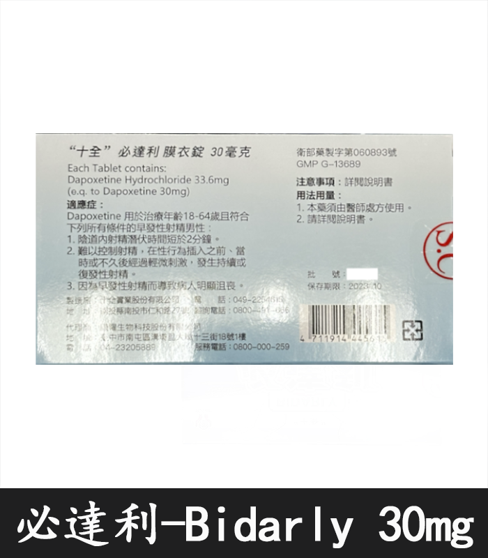 - 主要成分:含有 達泊西汀(Dapoxetine),與「必利勁」相同,專門用於改善早洩問題。