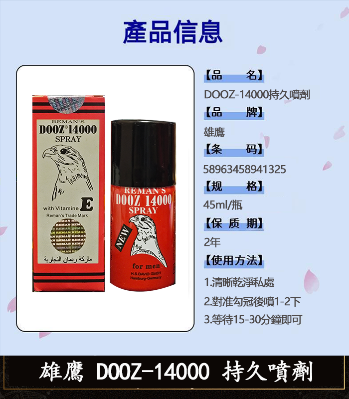 雄鷹持久液 DOOZ-14000 延時噴霧丨持久超長 1瓶15ml-大樹精選