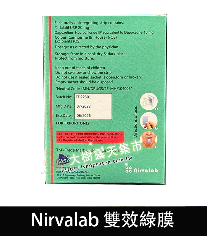 印度Nirvalab雙效綠膜口溶膜片-助勃+延時 1盒/10片-大樹精選