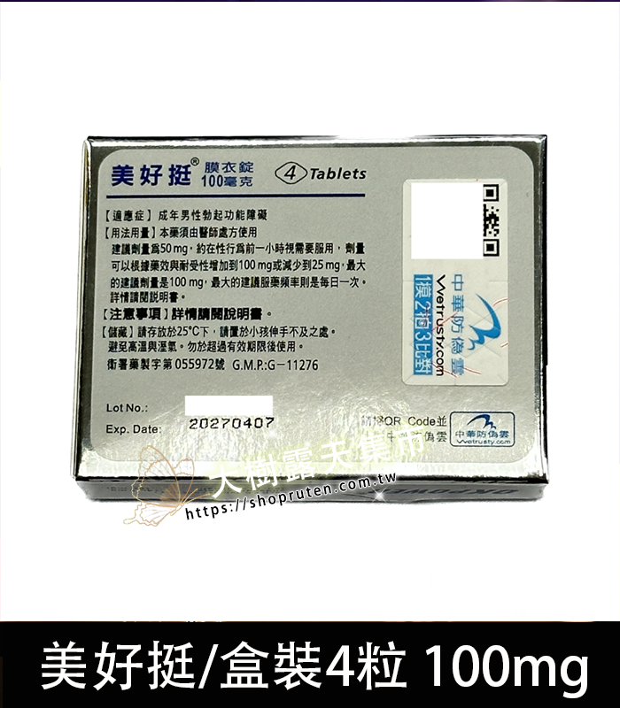 護挺膜衣錠 威而鋼學名藥 Silenafil 100mg – 助勃-大樹精選
