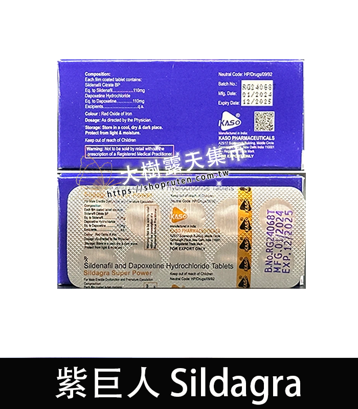 紫巨人 Sildagra Super Power 超級雙效威而鋼是專為男性設計的高效雙效產品,結合了西地那非(Sildenafil)與達泊西汀(Dapoxetine)兩大活性成分,專門針對勃起功能障礙(ED)和早洩(PE)問題提供全面解決方案。這款產品的220mg強效配方能夠快速起效,不僅幫助提升勃起硬度,還延長性愛時間,讓您在每次性愛中都能表現出眾,重拾自信與激情。