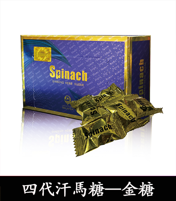 Spinach金糖是汗馬糖的第四代升級版,四代汗馬糖功效比前3代都要好,Spinach金糖是不會出現副作用的。因為它的成分都是純植物提取,並沒有添加人工化學產品成分不含激素、西藥、禁藥。