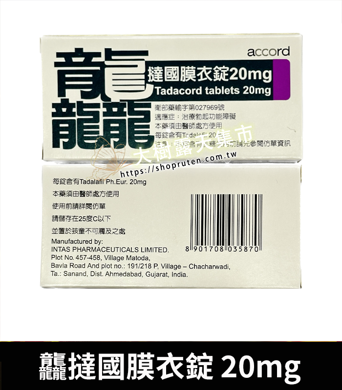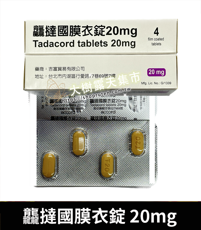 祥勝 – 龘撻國膜衣錠 Tadacord 20mg (4粒/盒) Tadalafil丨正品保證