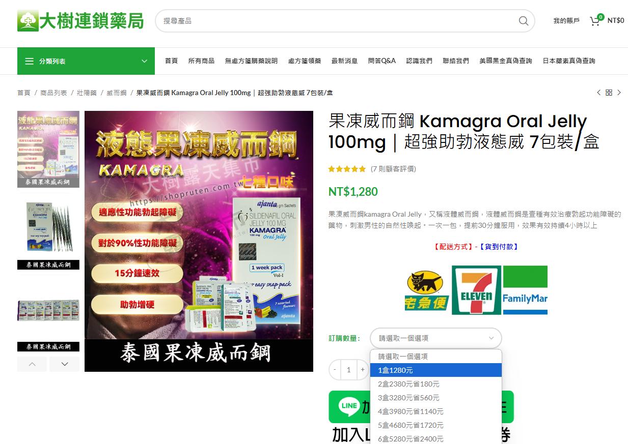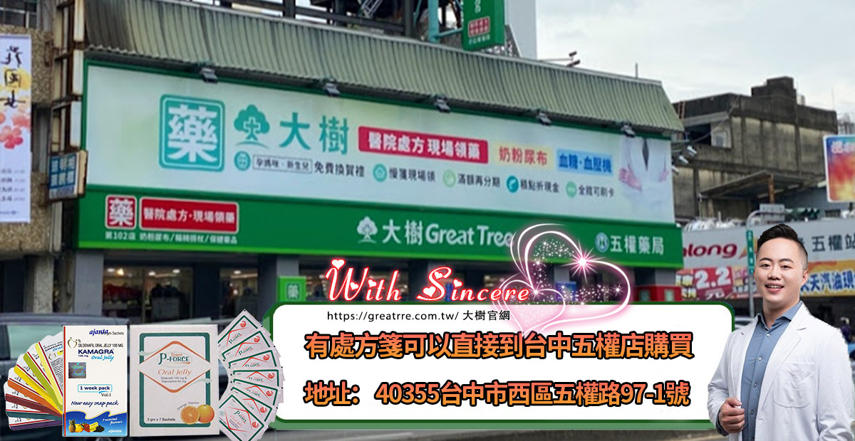 大樹藥局是台灣知名的連鎖藥局,提供經授權的正品果凍威而鋼,購買時出示處方箋即可現場購買,沒有處方箋也支持線上訂購與配送服務。